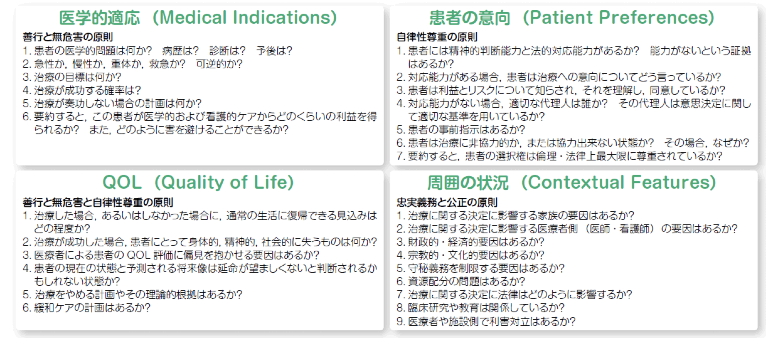 医学書院 :臨床倫理4分割法とは?(川口 篤也医師)→こちら から引用